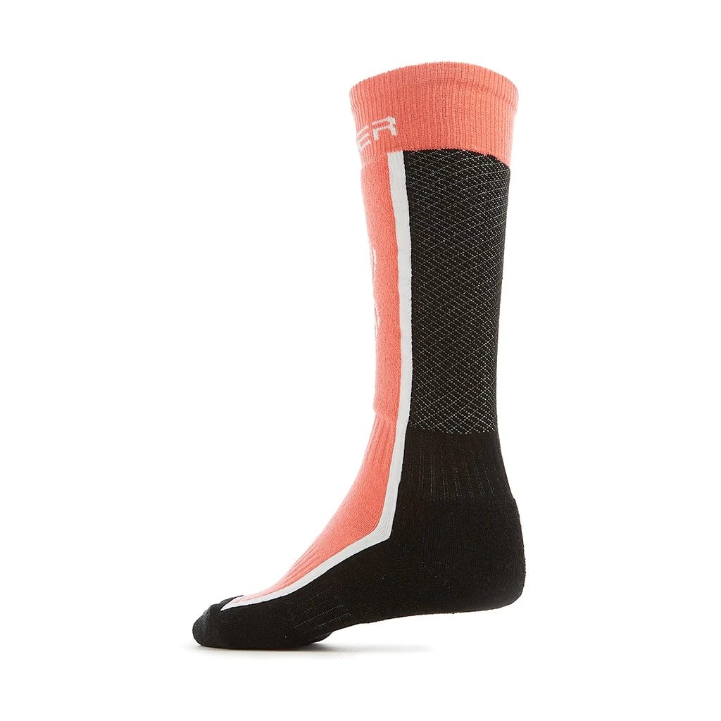 The Sweep is a durable, synthetic ski sock that will keep the toes of tomorrow’s ski racers warm and dry. Light cushioning at the shin provides a comfortable fit and compression at the ankle and arch increases performance.
