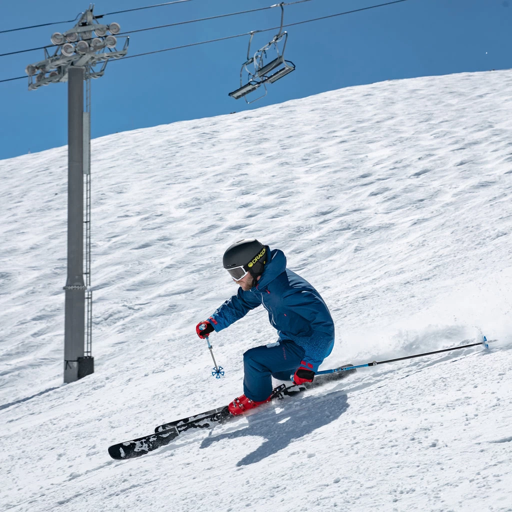 Inspired by big mountain jackets, and made for the truest of alpine and backcountry skiers, the Anthem Jacket returns to make a statement to the Spyder line. 100g of PrimaLoft® Black Eco insulation and Spyder’s brand-new 360° stretch EXO SHIELD technology increases freedom of movement and keeps you warm and dry. The fixed helmet-compatible hood, snapback powder skirt, and interior stretch cuffs with thumb holes ensure that the Anthem stays in place. Core vents angled slightly more forward toward the chest than typical jackets are strategic to allow you maximum cooling during warmer days. Oversized front zippered pockets are placed slightly higher on the jacket to allow you to reach what matters most even with the hip belt of a backpack still attached. From carving groomers at your local mountain to skiing in the sidecountry with a pack on, the Anthem adapts seamlessly.